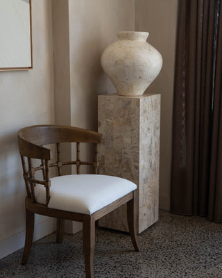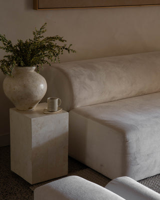 Plinths are a minimal, versatile and timeless alternative to a traditional side table, coming in various materials and finishes they can be a seamless way to instantly elevate your space. Consider the desired focal point carefully - opt for a neutral material to highlight the featured item, or select a bold marble option that captivates attention independently.