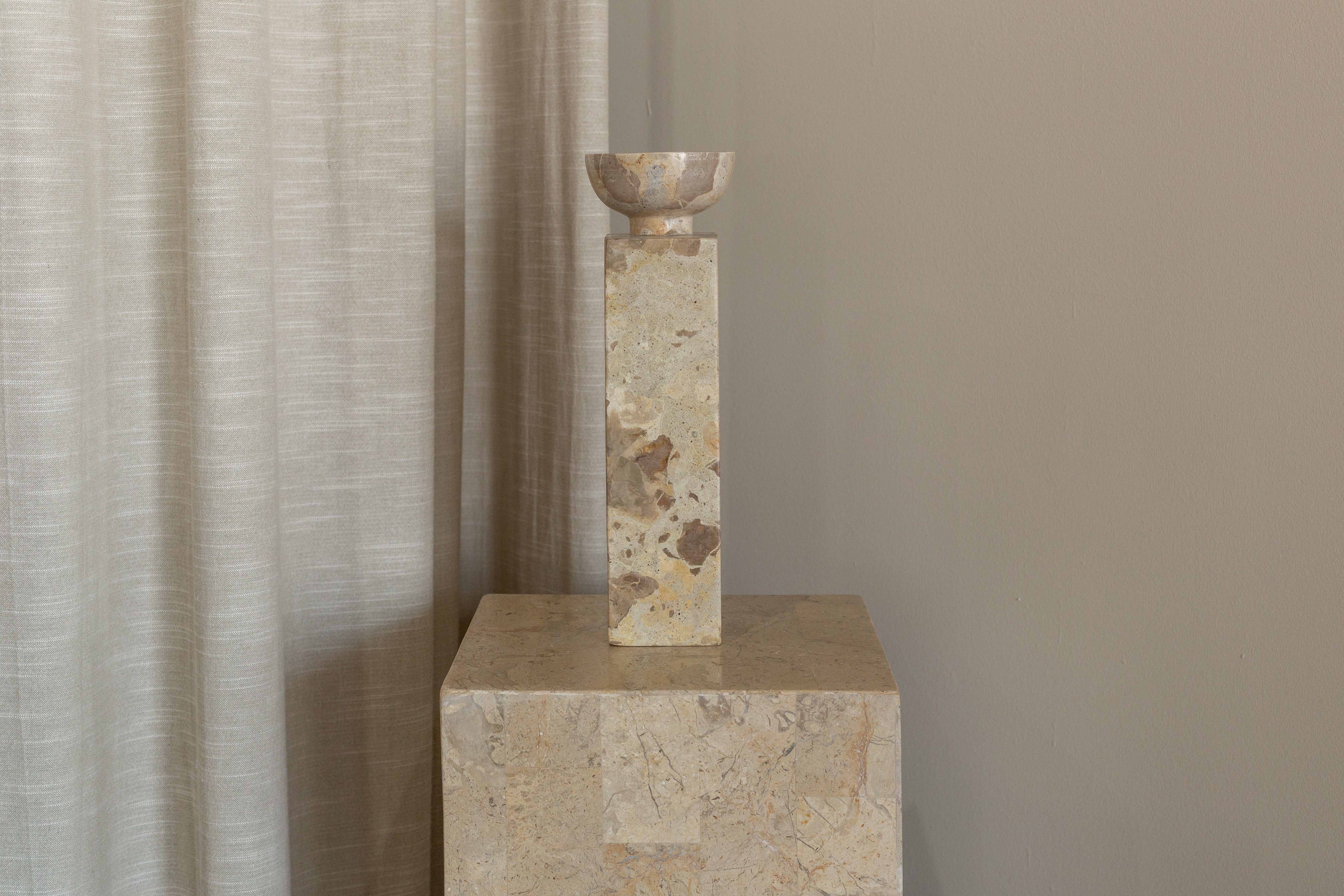 Substantial in scale, the Opus Large Candle Holder is designed to elevate your space with both height and elegance. A tall, square pillar carved from solid marble, it features a refined, rounded top with a recess to hold a medium-sized candle. Bold yet sophisticated, its brutalist silhouette makes a sculptural statement in any setting.