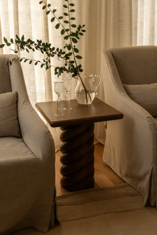 Adorn your spaces with our timeless side tables. Handcrafted by our Artisans, these designer pieces are available in a variety of organic native materials including Fossil Stone, Marble, Travertine, and Gmelina Wood. Elevate your living room, hallway, and bedroom with our chic side tables or opt for our versatile Plinths, which can be used as unique alternatives. Discover the perfect side table to complement your personal style and create a serene sanctuary.